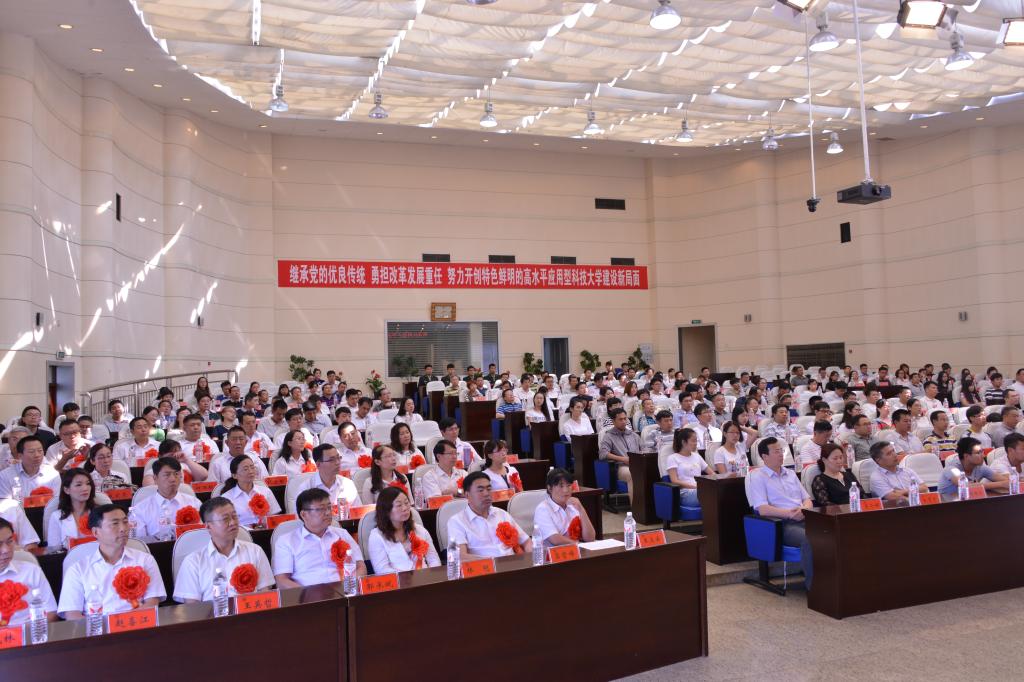 学校党委书记申林作了题为《继承党的优良传统 勇担改革发展重任 努力开创特色鲜明的高水平应用型科技大学建设新局面》的讲话。申书记在讲话中回顾了中国共产党紧紧依靠人民,实现中华民族伟大复兴的艰辛而光辉的伟大历程,揭示了“人民跟着共产党干”的历史必然选择,并结合结合国家经济发展的新常态、深化改革的新形势、龙江振兴的新任务、高等教育发展的新要求,对今后一个时期学校的建设与发展,提出了明确要求和殷切希望。一是要解放思想,求真务实。要在求真务实上解放思想,要在勇于突破上解放思想,要在扬长避短、扬长补短、扬长克短上解放思想。二是要聚焦使命,服务大局。要在科学审视中准确把握大局,要在明确定位中主动服从大局,要在担当有为中积极推动大局。三是要转变作风,提振精神。要在加强学习中提高服务师生的本领,要在真抓实干中培养“工匠精神”,要在服务师生中深化“为民”情怀。四是要从严治党,履职尽责。要进一步严明政治纪律和政治规矩,要深入开展“两学一做”学习教育,要进一步落实党风廉政建设主体责任和监督责任。申书记强调指出,全校各级党组织和广大党员要紧密团结在以习近平同志为总书记的党中央周围,团结带领全校党员干部师生以只争朝夕的干劲,舍我其谁的拼劲,一抓到底的韧劲,黾勉同心、携手奋进,交出无愧于时代、无愧于历史、无愧于师生的崭新答卷,努力开创学校建设发展新局面。