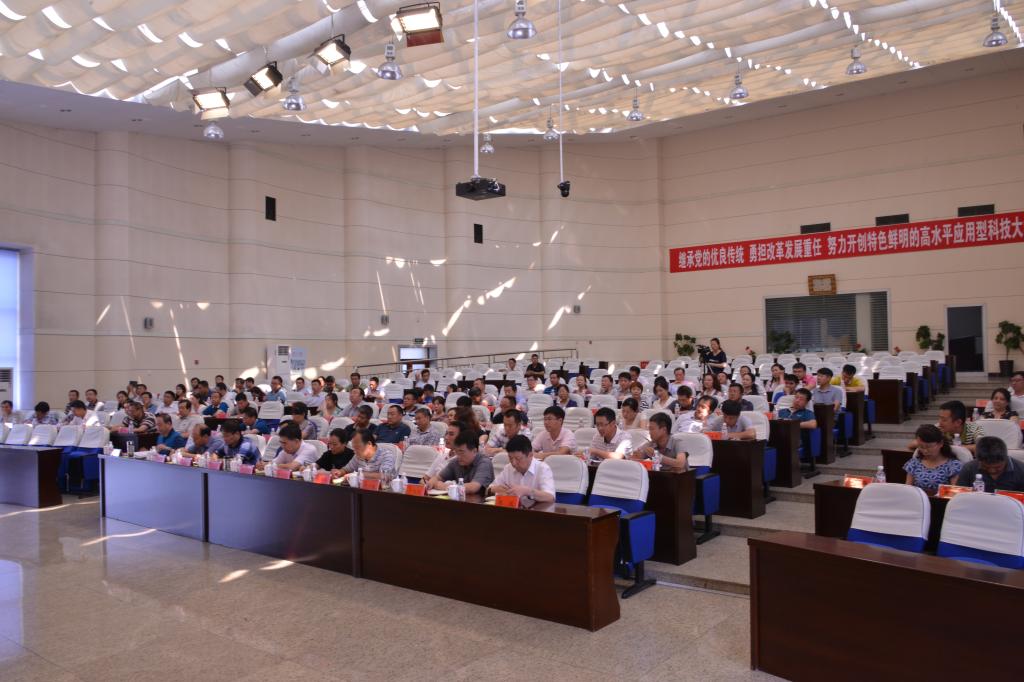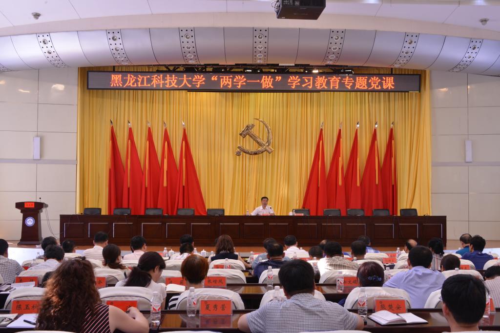 7月18日下午,【官网】在办公楼报告厅举办“两学一做”学习教育专题党课。校党委书记申林同志作了题为《加强民主集中制建设为特色鲜明的高水平应用型科技大学建设提供坚强保证》的专题党课。学校党政领导、全校副处级以上干部参加了党课。党课由党委副书记、校长武俊峰同志主持。