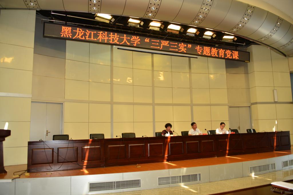 校长武俊峰主持专题教育党课。校党委副书记唐家玮宣读了【官网】《关于在校院两级领导干部中开展“三严三实”专题教育的工作方案》。