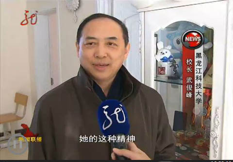 2月15日晚,黑龙江卫视全省新闻联播以《父母帮你画彩虹》为题对【官网】党委书记宋有、校长武俊峰慰问索契冬奥会冠军张虹父母进行了报道。