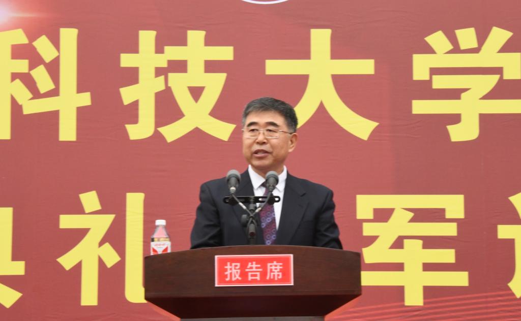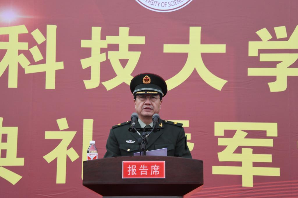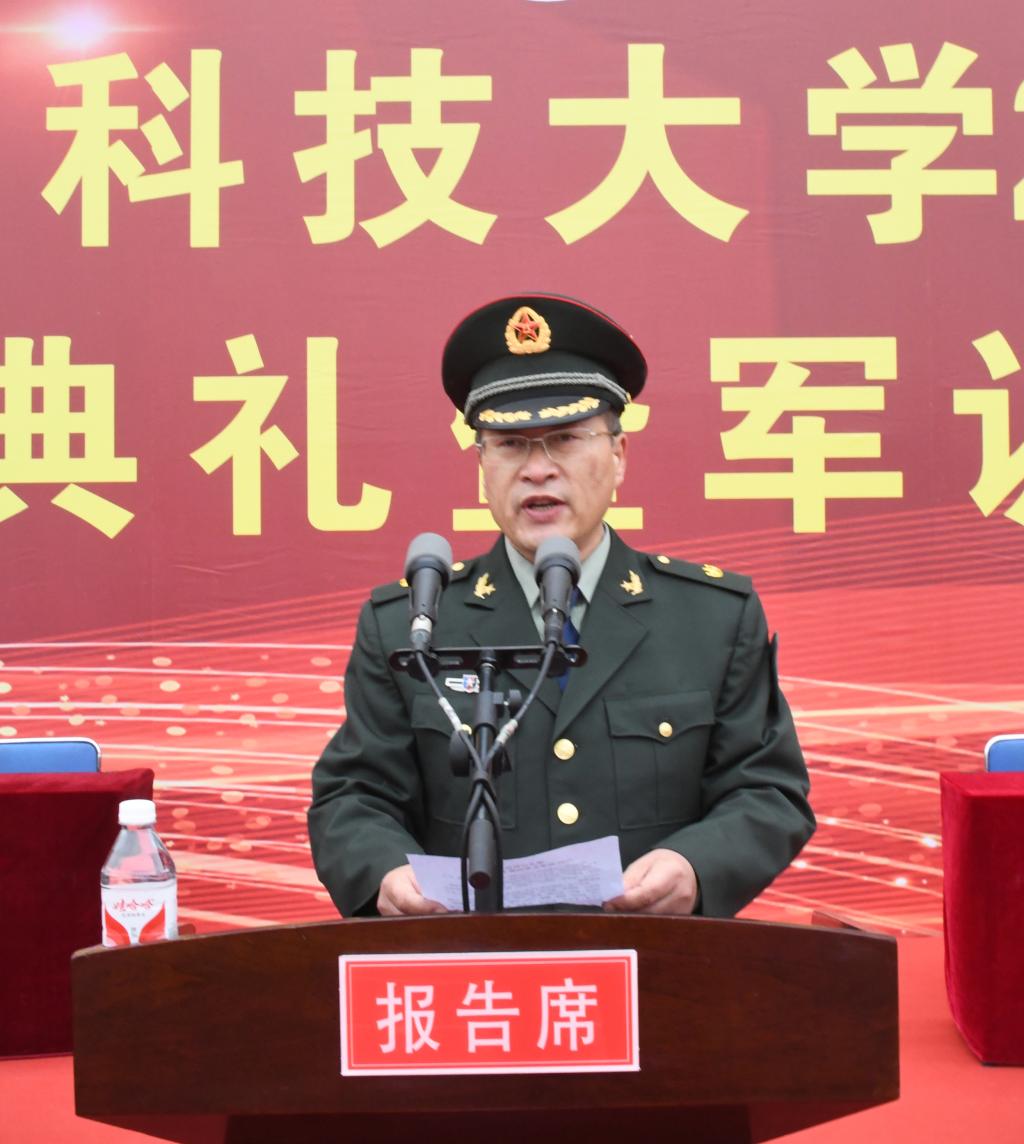 校党委副书记、军训团政委于成学做军训动员讲话。他强调全体新生要通过军事训练和入学教育厚植家国情怀,筑牢国防安全意识;锤炼顽强意志,培养艰苦奋斗精神;锻造砥砺品格,增强组织纪律观念;实施科学训练,确保军训圆满成功。全校各单位要严格落实疫情防控措施,强化学生教育管理,加强军训服务保障,扎实推进各项训练任务落实。