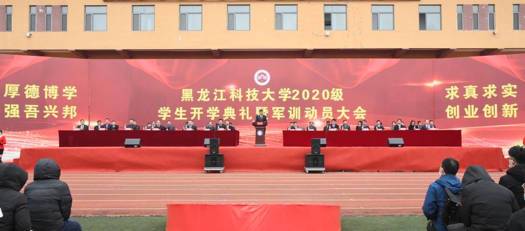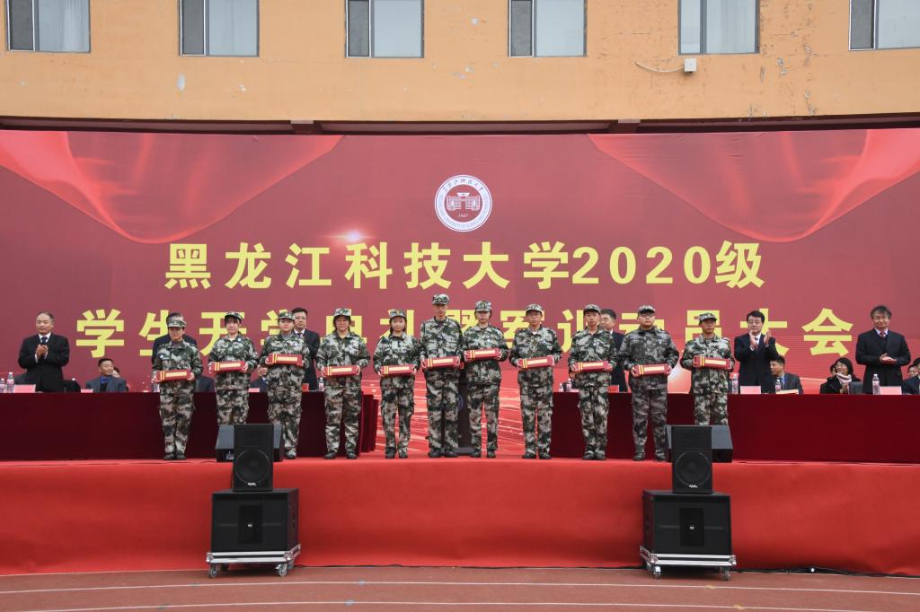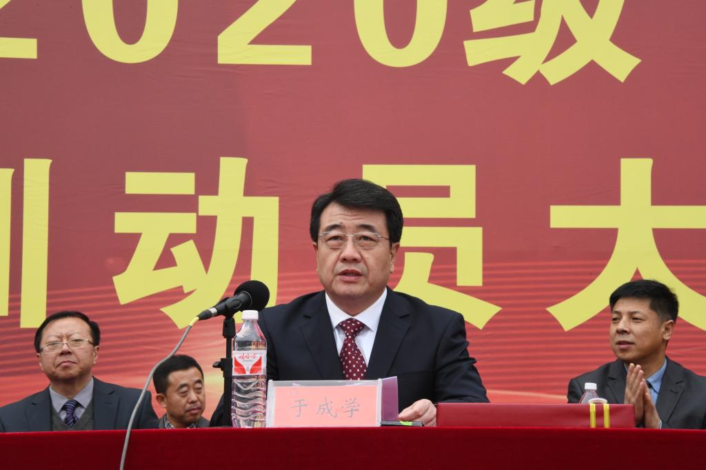 上午10时,2020级学生军训动员大会正式开始。省军区军训办公室上校王哲、承训部队上校董伟光、顾德平,校党委书记周宏力、校长郝传波、校党委副书记于成学、副校长张国华参加动员会。学生处、教务处等部门负责人,各学院主管学生工作领导出席大会并在主席台就坐,新生辅导员、新生班主任、56名承训教官以及全体2020级学生参加了军训动员大会。学工部部长、学生处处长、武装部部长邬承斌主持军训动员大会。