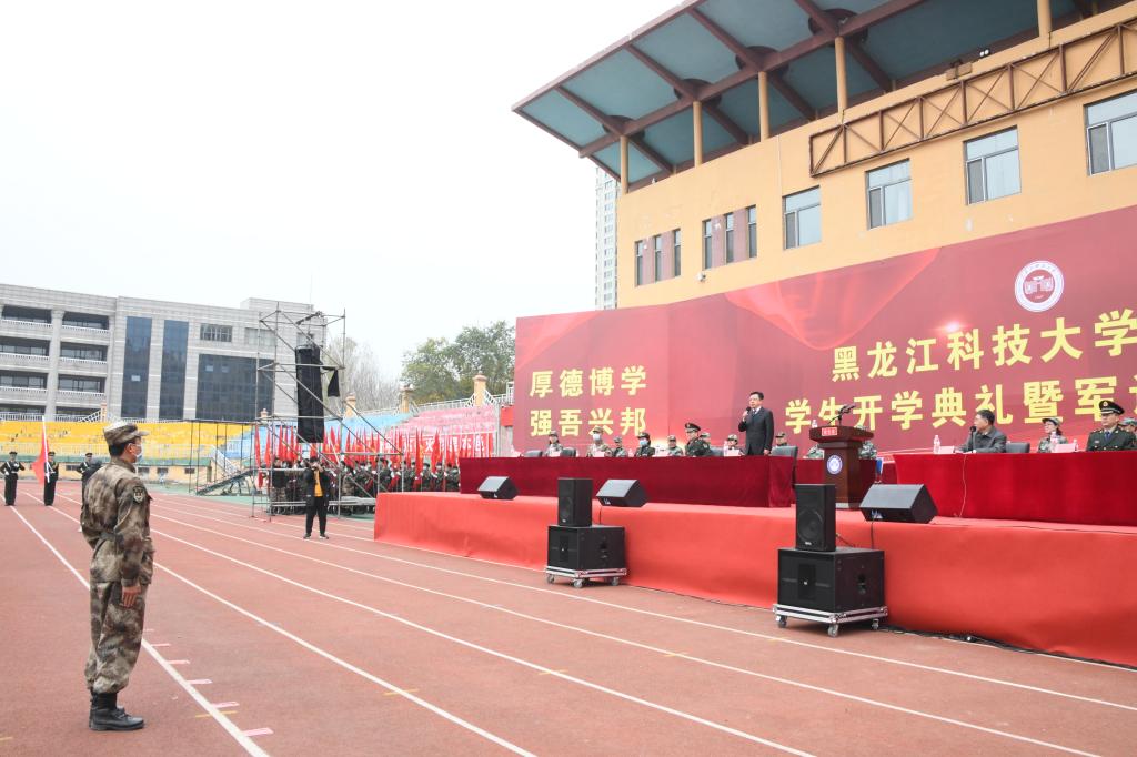 10月13日上午,【官网】在田径运动场隆重举行了2020级学生开学典礼暨军训动员大会。校领导班子全体成员、有关教学单位和相关部门负责人出席典礼并在主席台就坐,各学院其他领导班子成员、全体辅导员、新生班主任、承训教官以及全体2020级学生参加了开学典礼。校党委副书记于成学主持开学典礼。