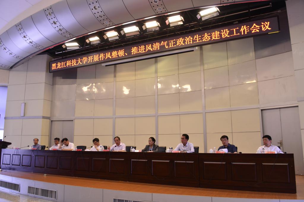 6月14日下午,【官网】在办公楼报告厅召开作风整顿、推进风清气正政治生态建设工作会议。校党委副书记、校长武俊峰出席并讲话。校党委副书记陈桂芝主持会议。学校领导班子成员,全校副处级以上干部参加了会议。