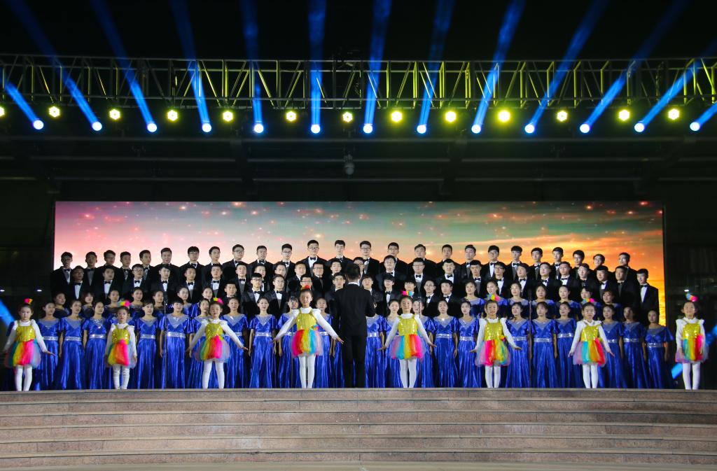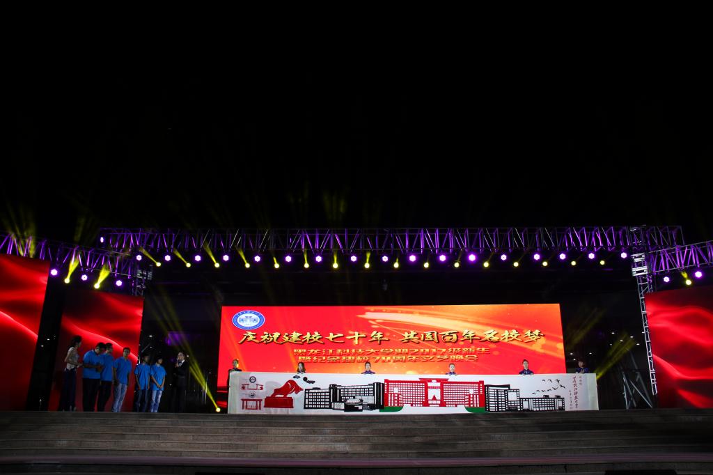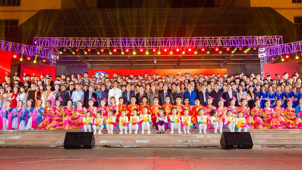 整场晚会在《难忘今宵》的旋律中落下帷幕,观演领导和校友代表登台,同参演的600余名演员亲切握手并合影留念。