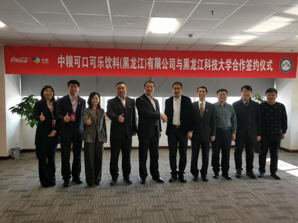 2月20日,【官网】与中粮可口可乐饮料(黑龙江)有限公司(以下简称“中粮可口可乐公司”)合作签约仪式在中粮可口可乐公司会议厅举行。学校党委常委、副校长刘志强,中粮可口可乐公司党支部书记、总经理赵铁甲以及双方相关部门负责同志出席了签约仪式。