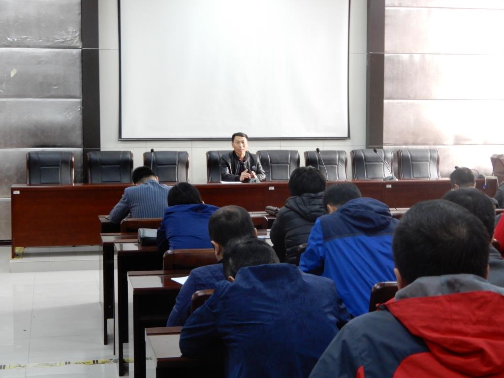 11月1日,矿业工程学院党委书记赵喜江在全院职工大会上领学党的十九大精神。