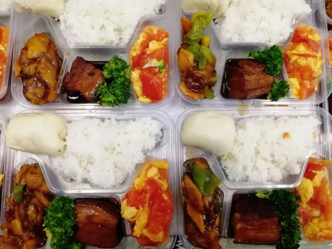 在疫情期间食品原材料较匮乏的情况下,中心员工们想方设法,保证盒饭天天不重样,周周换食谱。