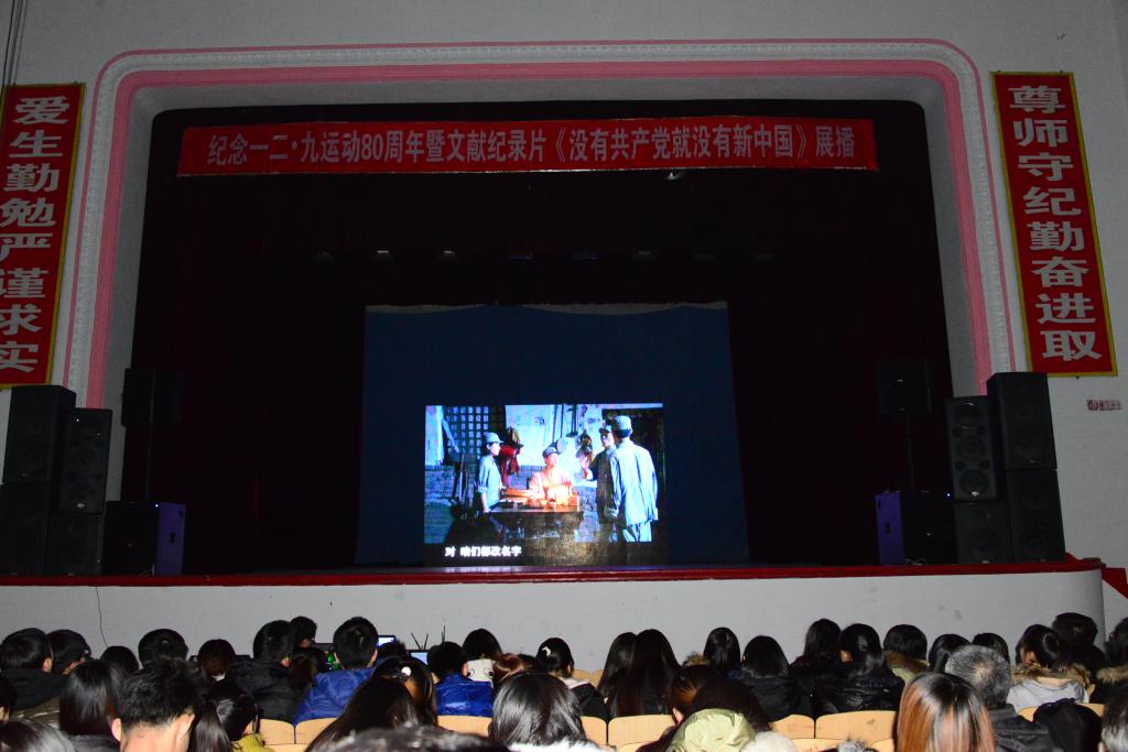 为深入贯彻落实习近平总书记关于“用党的历史教育党员、教育干部、教育群众尤其是教育青少年,积极推动党史教育进学校、进课堂、进学生头脑”的讲话精神,根据学校党委部署,党委宣传部、党委组织部、校团委于12月7日下午,组织【官网】各级党政干部、党支部书记、广大党员、教职工及学生骨干等600余人在大学生俱乐部观看了党史文献纪录片《没有共产党就没有新中国》。