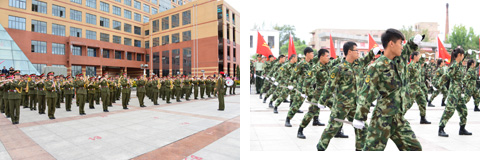 学校大学生仪仗队队员还在开训式上进行了军事技能汇报表演。