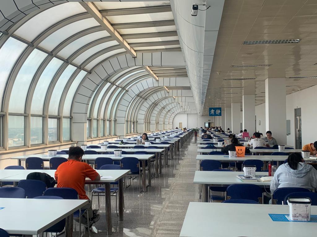 图书馆阅览室与借阅处人员络绎不绝,借书、还书、阅书,师生们徜徉在书籍的海洋中。