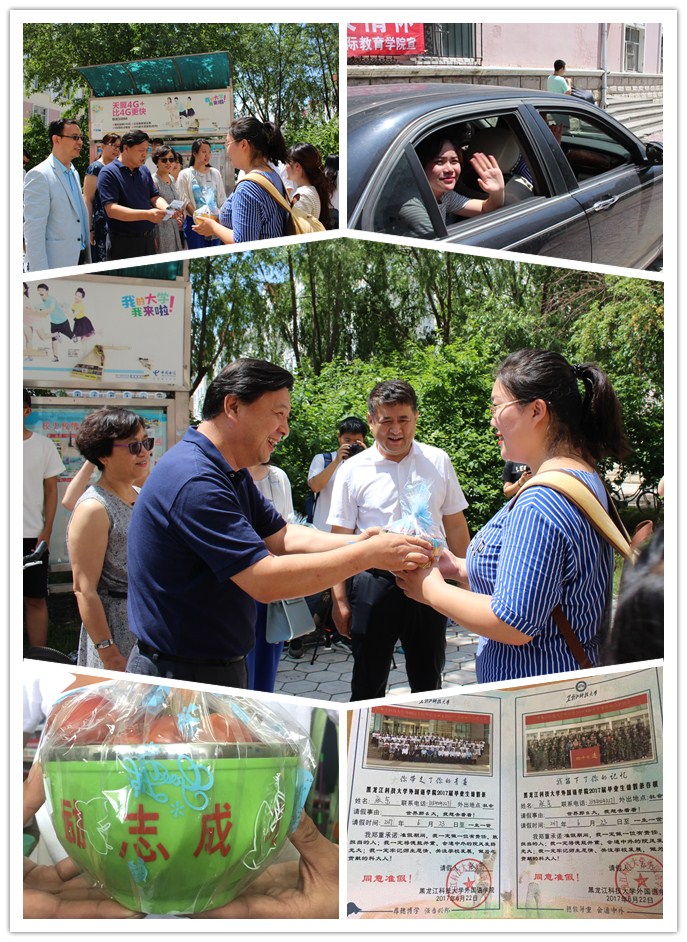 22日是午12时,在第九学生公寓。校党委常委、纪委书记田成义来到外国语学院学生公寓楼下,同外国语学院党政领导及全体辅导员一同送别离校学生。田成义书记为第一批离校的毕业生送上了“励志成才桃李天下 事事顺利”祝福。当毕业生交上“OD在线外国语学院2017届毕业生请假条”时,一句“你带走了你的青春,我留下了你的回忆”带出了学院对毕业生无比的眷恋;一个个装满荔枝、桃子、李子、柿子的彩色碗承载了外国语学院全体师生的祝福;一个个幸福车队满载着学院党委深深的关爱护送毕业生踏上人生的新征程。