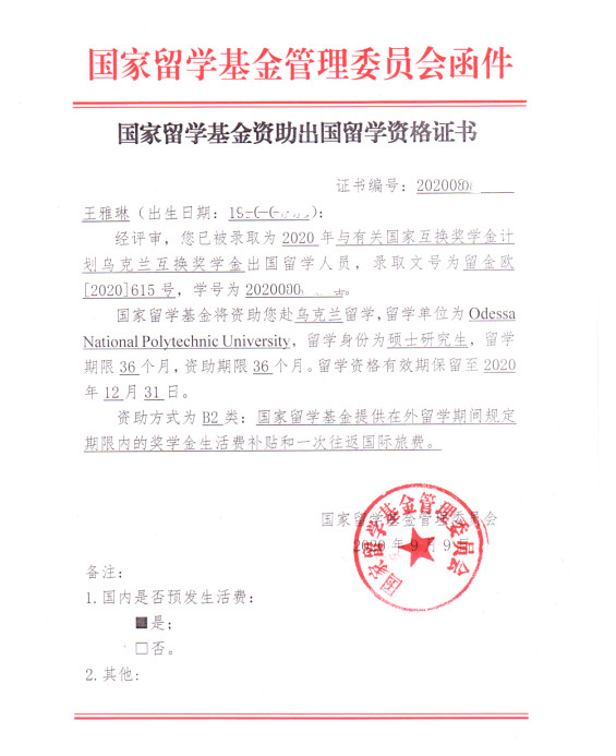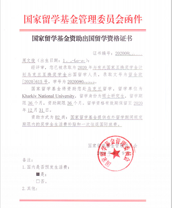乌克兰互换奖学金是根据中国与乌克兰政府互换奖学金交流计划,双方每年互换奖学金留学人员,前往对方国家学习或研修。该项目面向甘肃省、内蒙古自治区及黑龙江省有关高校进行选拔。留学期间乌方提供奖学金,国家留学基金提供互换奖学金出国留学人员补贴及一次往返国际旅费。本次获批项目录取层次均为研究生,同时也是【官网】乌克兰项目获批人数历年之最。