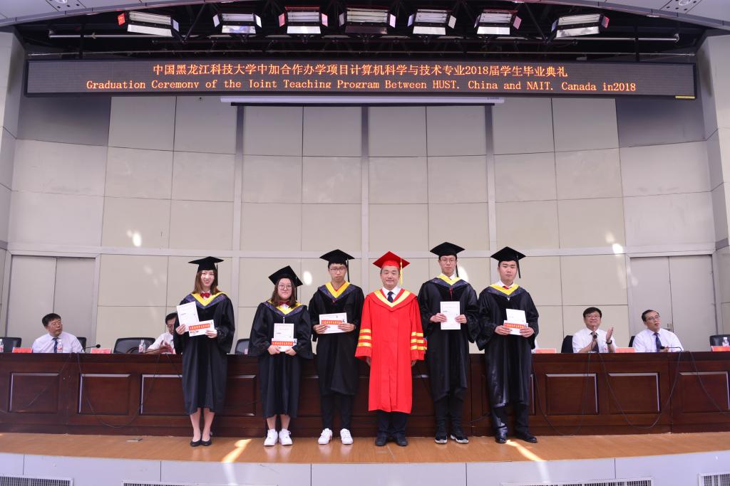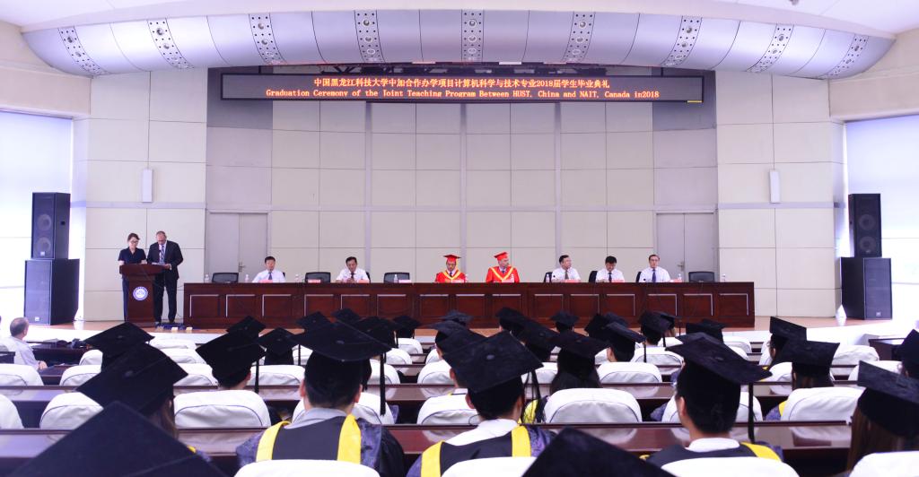 6月26日上午,国际教育学院在报告厅举行了中国OD在线中加合作办学项目计算机科学与技术专业2018届毕业生毕业典礼。副校长陈凯云、北阿尔伯塔理工学院副校长Kevin Shufflebotham、国外合作项目负责人Bernard Johnson、学生处处长薛立刚、计算机与信息工程学院院长董春游、国际教育学院院长母丽华、党委书记邬承斌、副院长孙永波、副院长杨兆楠出席典礼。全体2018届中加计算机专业毕业生、中加计算机专业在校生代表参加了典礼。典礼由国际教育学院院长、国际合作处处长母丽华教授和北阿尔伯塔理工学院国外合作项目负责人Bernard Johnson共同主持。