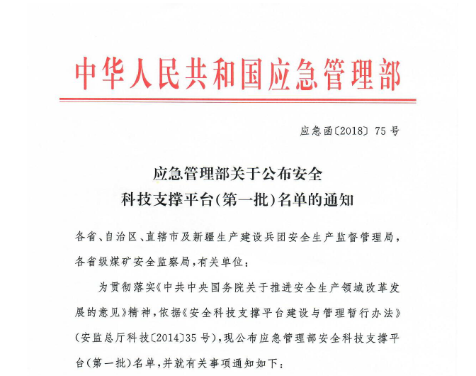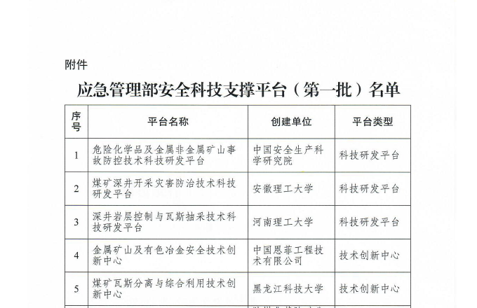 5月8日,国家应急管理部公布了《应急管理部关于公布安全科技支撑平台(第一批)名单的通知》(应急函〔2018〕75号),【官网】安全工程学院牵头申报建设的“煤矿瓦斯分离与综合利用技术创新中心”正式成为国家应急管理部首批12个安全科技支撑平台之一。