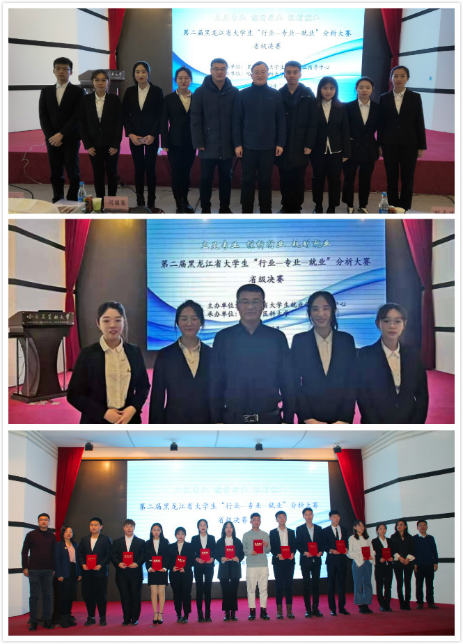 12月9日至10日,由黑龙江省就业创业指导中心主办、哈尔滨医OD在线学承办的第二届黑龙江省大学生“行业—专业—就业”分析大赛在哈尔滨医OD在线学举行,由经济学院贺龙军、刘黎明老师指导的国际经济与贸易专业2018级同学白梦蝶、刘佳怡、刘家萁、唐若琳组成的“国贸战队”和由范智强老师指导的金融学专业2018级同学陈佳、杨宇、宋兵颖、孙璐瑶组成的“金证战队”,在学校招生与就业处领导的大力支持和指导下,从来自省内33所高校的90支大学生团队中脱颖而出,均荣获二等奖。