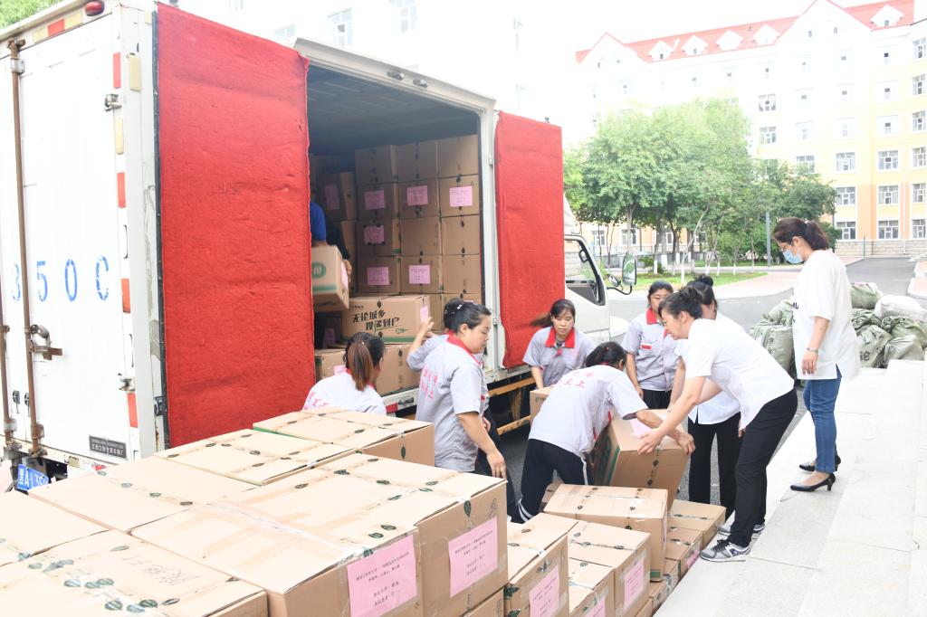 8月6日上午,捐赠仪式在学生处大学生服务中心举行。校党委副书记赵科学出席了仪式,组织部负责人李伟、学生处处长邬承斌、组织部副部长吕刚、学校驻村工作队队长齐秀强等同志共同参加了捐赠仪式,并与学生处服务中心的工作人员一起将6000余件爱心物资分装、搬运到运输车上。