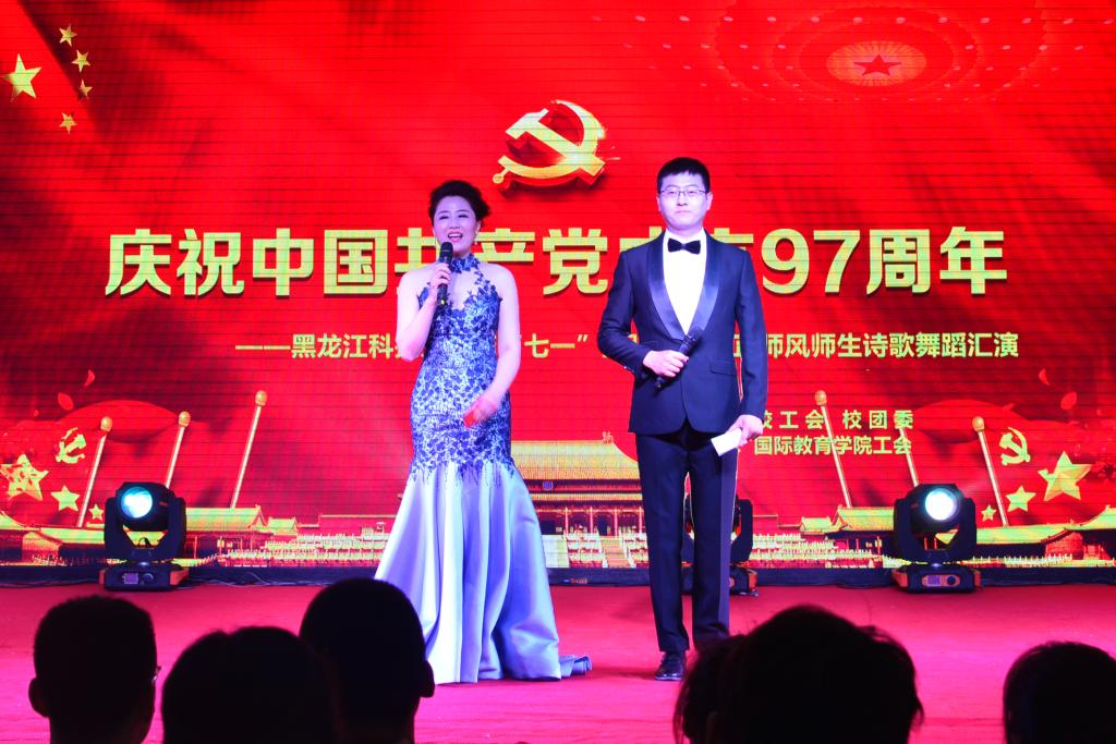 6月29日下午,由校工会、校团委主办,国际教育学院承办的庆“七一”暨“强师德、正师风”师生诗歌舞蹈汇演在沁芳园三楼举行。整台演出由10个经典舞蹈和5首诗歌组成,热情讴歌了伟大的中国共产党带领全国各族人民取得的辉煌成就和【官网】全体师生员工“自强不息、创业创新”的办学精神。