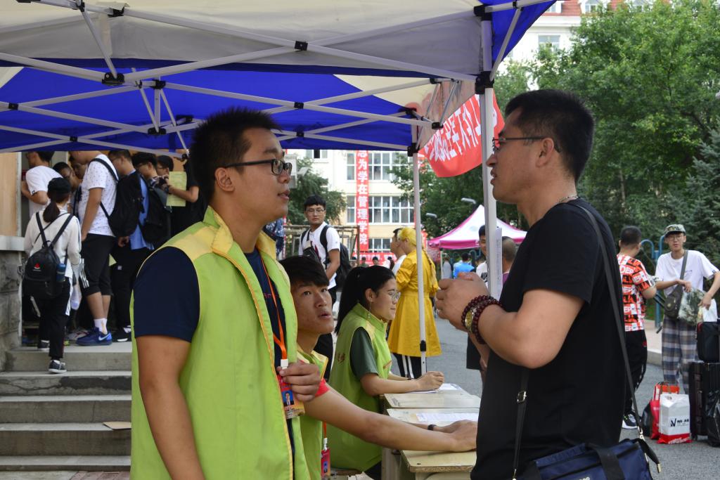 一大早,志愿者们前往哈尔滨各个火车站迎接新生,新生们陆续前往迎新点报到,工作人员和志愿者为新生提供细致入微的服务,各项工作井然有序。