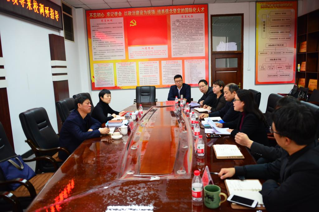 11月25日下午,省教育厅对外合作与交流处处长宗希云,吴昊来校调研,听取“改进高校国际交流合作评价”的意见和建议,指导和解决【官网】国际合作与交流工作中存在的实际问题。副校长陈凯云在科技大厦高层0606会议室接待并主持座谈会,国际教育学院院长兼国际交流合作处处长母丽华,国际交流合作处副处长吕岚、国际教育学院副院长杨兆楠及国际交流合作处全体同志出席了座谈会。