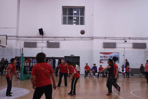 教工排协代表队和大学生排球代表队进行了两场友谊赛,第一场男女混合赛,第二场女教师队对阵女学生队,每场采取三局两胜制,整场比赛高潮迭起,整个赛场洋溢着“友谊第一,比赛第二”的和谐氛围,最终教师队凭借丰富的经验,娴熟的技术获得两场比赛的胜利,学生队响起了“向老师学习”的口号。