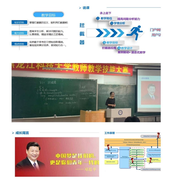 计算机学院党委自主题教育开展以来,坚持把贯彻落实全国教育大会精神和全国高校思想政治工作会议精神与推进专业课程建设有机结合起来,紧紧围绕立德树人这一根本任务,教育引导广大专业课教师自觉把教书和育人统一起来,把传授书本知识、专业理念和塑造学生品格、品行、品位统一起来,牢固树立知识传授与价值引领同频共振的教学理念,积极探索课程思政建设。在刚刚落下帷幕的全校教师教学技能大赛中,韩娜老师凭借极具软件专业特色的“课堂思政”课获得了理工中级职称组第一名,为学院赢得了广泛认可。