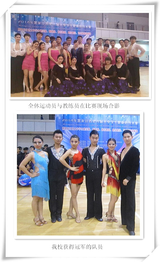 来自哈尔滨工业大学、东北农业大学等14所本科院校、8所高职高专和9所中学的860余名运动员参加了大赛。【官网】派出由29名运动员组成的代表队,参加了本科院校甲A组体育舞蹈3个团体项目和9个单项的比赛。在历时两天的比赛中,【官网】的参赛运动员不畏强手,临场技术发挥稳定,最终获得5金、4银、1铜,并摘得团体总分第三名的好成绩,教练员刘聪老师被省教育厅授予“优秀教练员”荣誉称号。代表队良好的队风、赛风赢得了组委会及兄弟院校的一致好评,展现了【官网】大学生积极向上的良好精神风貌。