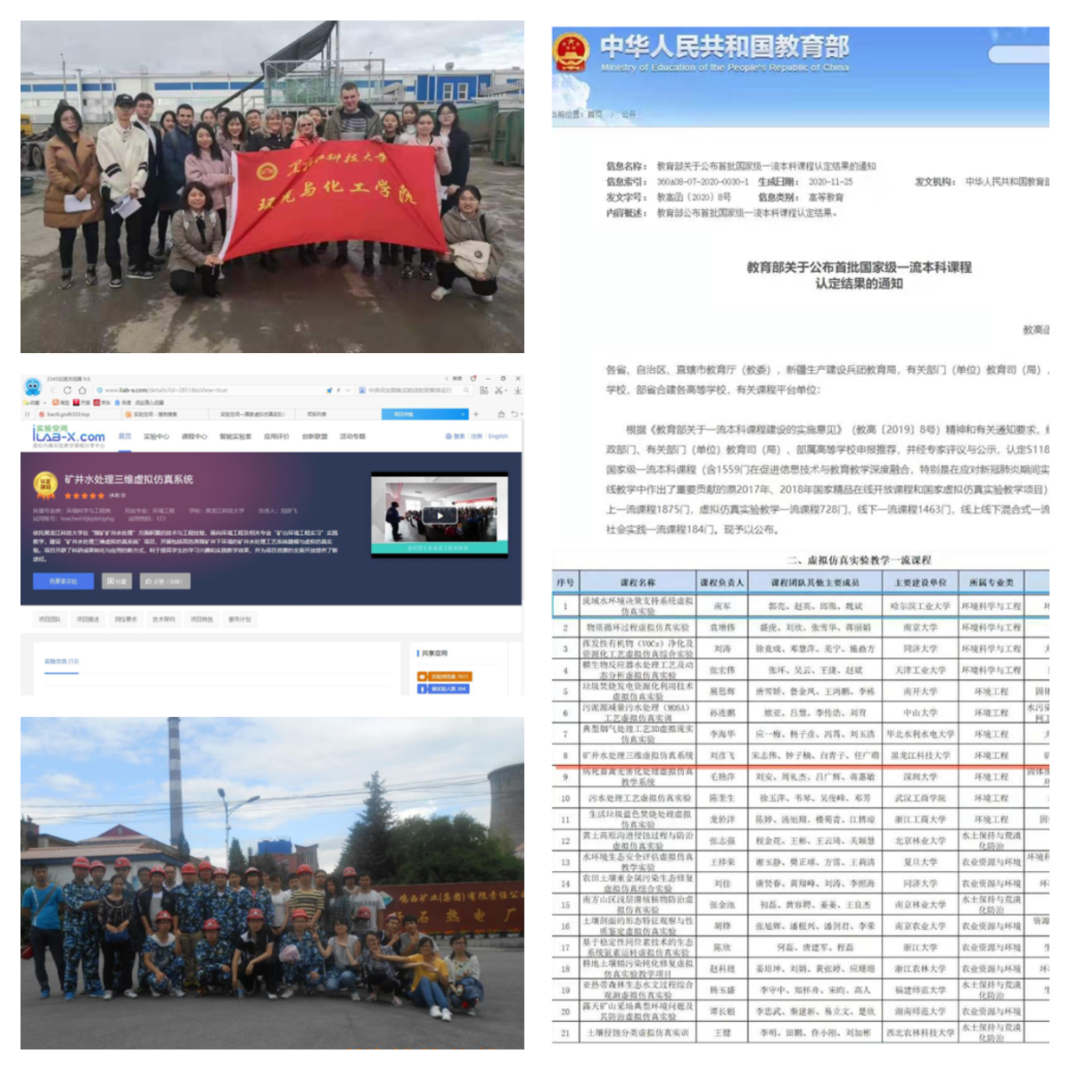 通过系统设计、全员参与,专业课程思政建设工作有了大幅度提升,2020年12月,专业核心课程“水污染控制工程”建成黑龙江省课程思政示范课。