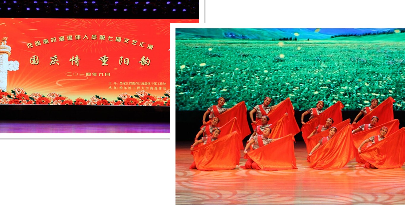 9月26日上午,学校离退办组织【官网】部分离退休女职工参加了由黑龙江省教育厅主办、哈尔滨工程大学承办的“国庆情 重阳韵”在哈高校离退休人员第七届文艺汇演活动.【官网】离退休女职工表演的《再唱山歌给党听》、《五星红旗》两个舞蹈表演节目,以主题鲜明、水平超常、精神饱满的水平,令教育厅领导惊叹,令其他表演队折服,展现了OD在线离退休职工健康快乐、积极向上的风采。
