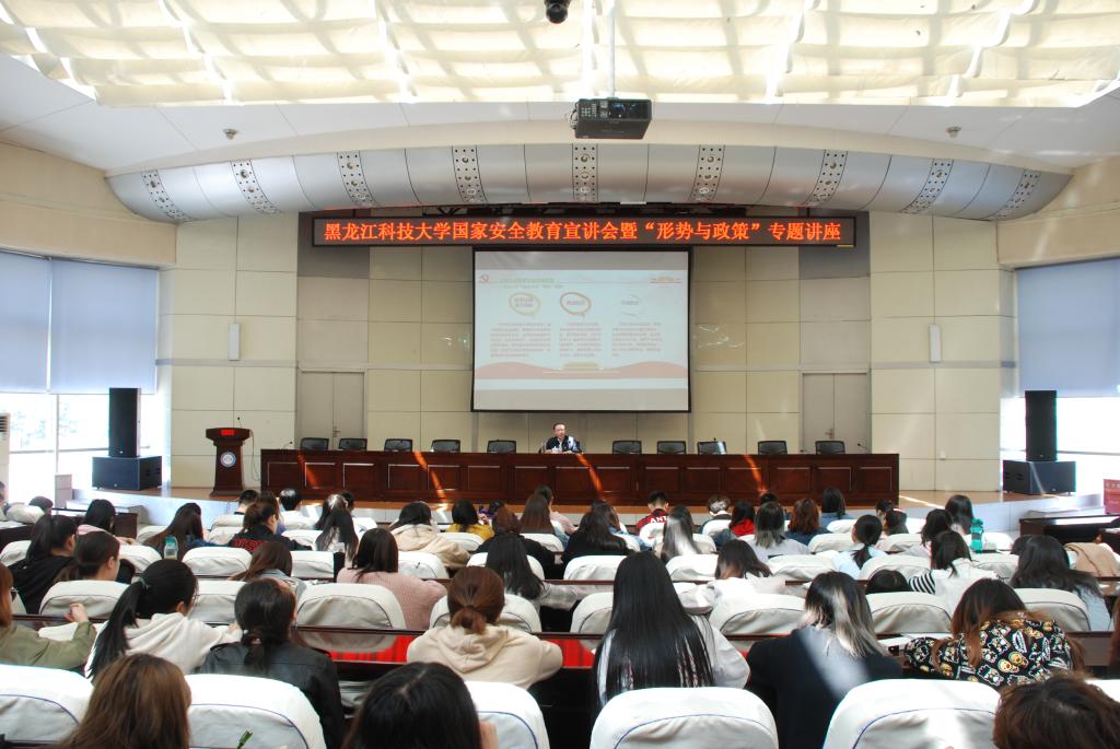 为深入贯彻落实习近平总书记总体国家安全观和全国全省教育大会精神,在第四个全民国家安全教育日到来之际,4月15日上午,【官网】在信息楼报告厅举行国家安全教育宣讲会暨“形势政策课”专题讲座。校党委书记武俊峰教授作专题辅导报告,师生代表300余人在现场聆听了授课。授课活动由马克思主义学院院长王洪秋主持。