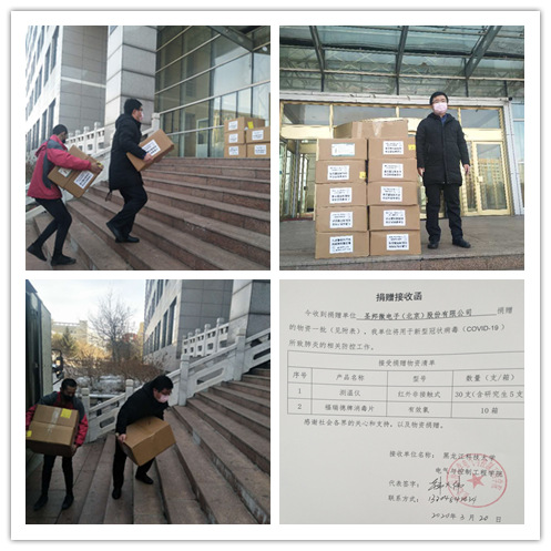 圣邦微电子(北京)股份有限公司,向学校捐赠康泰红外非接触式测温仪30支,福瑞德消毒片10箱(可配置84消毒液200吨),捐赠物资将由学校资产处根据各单位情况进行统一调配使用。