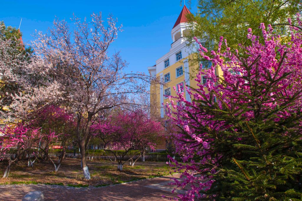 校园跌落在春天的怀抱里