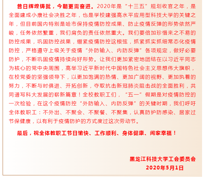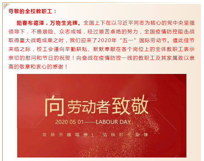 【共同战“疫”】致全校教职工“五一”国际劳动节慰问信