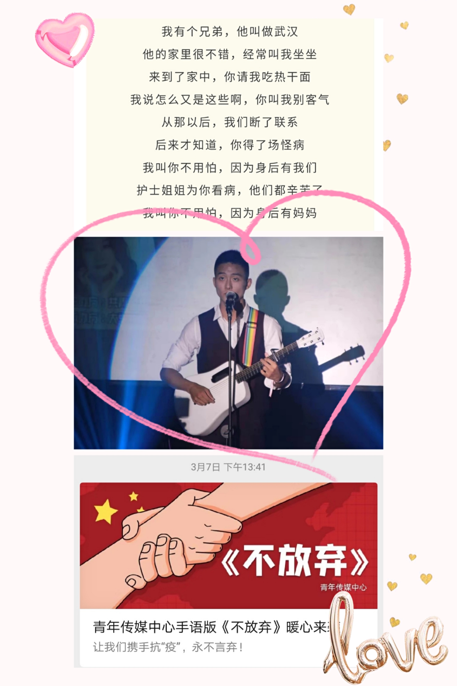 “我有个兄弟,他叫做武汉。”这样的一句歌词,不知不觉的哼唱了出来,在疫情防控艰难时刻,OD在线学子自发组织创作了原创歌曲《我的兄弟叫武汉》,制作了手语版《不放弃》献给远在武汉的千万兄弟姐妹,致敬抗疫一线医务工作者的平凡伟大,更是为武汉和全国人民加油打气。