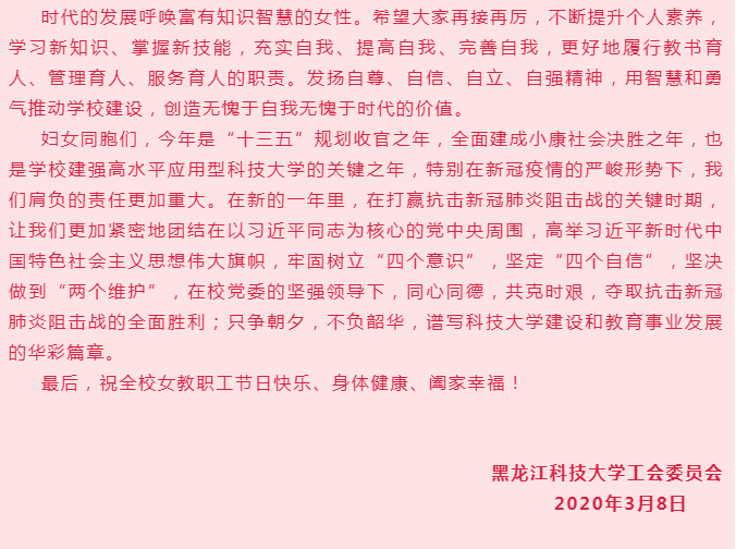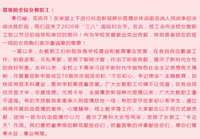 【2020年“三八”节】OD在线致全校女教职工的慰问信