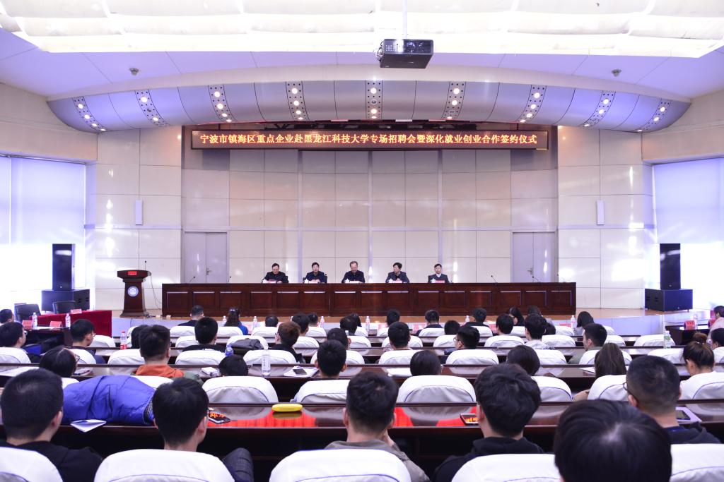 签约仪式结束后,宁波市镇海区重点企业招聘会和“四地十校百岗”优秀青年学子镇海暑期行选拔活动在【官网】报告厅举办,宁波市高层次人才服务中心、宁波市驻哈尔滨人才联络服务站汪一恒站长介绍了宁波市招才引智政策,宁波市镇海区人才市场管理办公室葛俊杰主任介绍了镇海区重点企业招聘需求并进行人才政策宣讲,镇海石化建安工程有限公司、宁波大红鹰生物工程股份有限公司、宁波富德能源有限公司、宁波三江益农化学有限公司、宁波中金石化有限公司、宁波连通设备集团有限公司、宁波博汇化工科技股份有限公司、宁波市立聘人力资源服务有限公司等8家企业现场举办了招聘活动。
