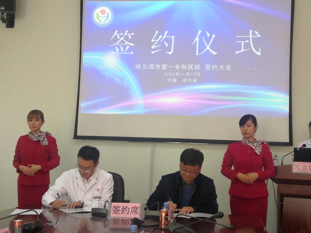 为全面加强和改进新时代【官网】学生心理健康教育工作,着力培育学生自尊自信、理性平和、积极向上的健康心态,不断提升心理育人质量,【官网】经多次与哈尔滨市第一专科医院进行协商,最终达成医联体共建合作项目。11月13日,【官网】与哈尔滨市第一专科医院医联体合作协议签约仪式在第一专科医院会议室举行,【官网】学工部(处)长邬承斌、哈尔滨市第一专科医院院长王喜今出席签约仪式。学生处副处长杨凤娟、心理健康辅导中心主任任燕参加了签约仪式。哈尔滨第一专科医院院长王喜今致辞并介绍了医院临床承载能力、医院服务基层成果以及与高校开展医联体合作情况。