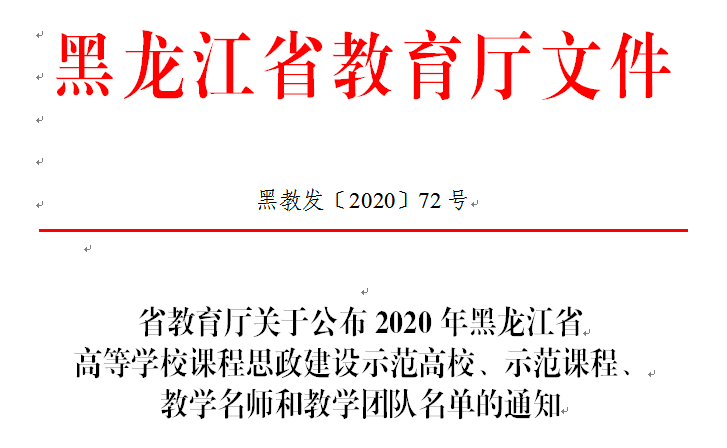 近日,黑龙江省教育厅发布了《关于公布2020年黑龙江省高等学校课程思政建设示范高校、示范课程、教学名师和教学团队名单的通知》。【官网】《可编程控制器原理及应用》和《水污染控制工程》2门课程获评黑龙江省高等学校课程思政建设示范课程,机械学院教师唐庆菊教授获评黑龙江省高等学校课程思政建设教学名师,“程序设计类课程教学团队”和“管理类专业课程教学团队”2个团队获评黑龙江省高等学校课程思政建设教学团队。