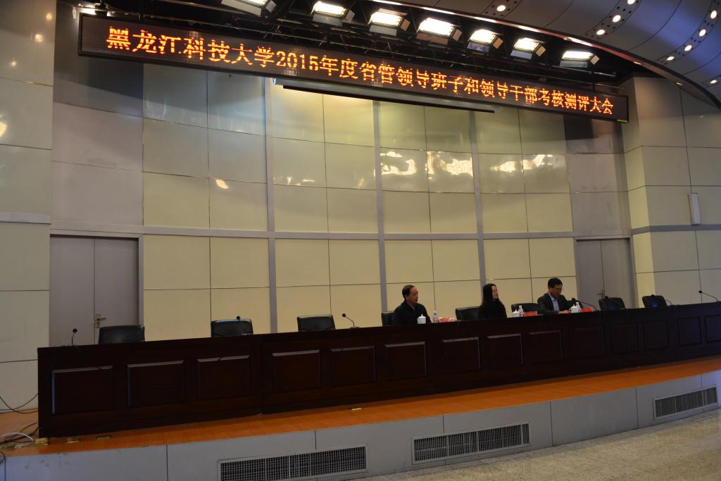 根据省委统一部署,12月30日上午,【官网】在办公楼报告厅召开了2015年度校级领导班子和省管干部考核测评大会。考核组组长、省教育厅机关党委副书记卢瑛同志,考核组成员省委组织部杨雷、王瑞男、杨任佳等同志出席会议。【官网】领导班子成员、处级干部、学科专业建设负责人、民主党派负责人等170余人参加了会议。会议由学校党委书记申林同志主持。