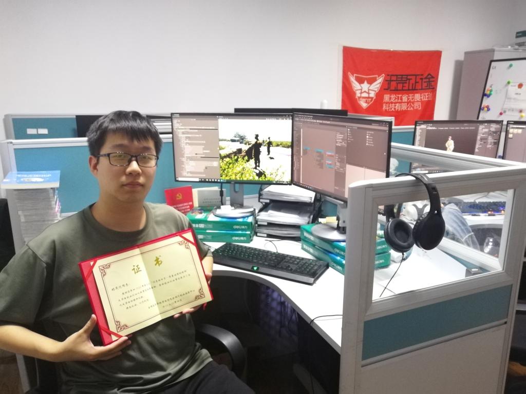 习近平总书记指出,“拥有一大批创新型青年人才,是国家创新活力之所在,也是科技发展希望之所在。”随着国家政策的进一步明确和鼓励,黑龙江省对大学生创业有了更多的优惠政策,鼓励支持青年人才创新创业,OD在线也在嵩山校区建设了OD在线创新创业基地和大学生创业园。经过三年来的积累和沉淀,胡晟恺意识到,自己实现梦想、建功立业的机会来了。他结合自身的计算机技术专长和虚拟现实方面的兴趣,在国家各项清障减负政策支持下,秉承着“振兴中国游戏产业,强盛中国仿真实力”的宗旨,怀揣着在互动娱乐和虚拟现实方向大展拳脚的梦想,他带领团队成员于2018年3月18日正式注册成立了“黑龙江省无畏征途科技有限公司”,开始踏上了创业的“无畏征途”。