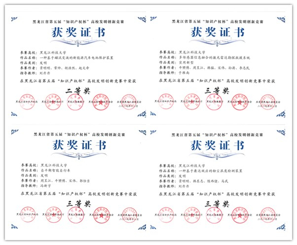 黑龙江省“知识产权杯”高校发明创新竞赛自2011年创办以来,每两年举办一次,具有广泛的活动基础,得到了省内高校的积极响应,挖掘了一批创新作品,发现了一批创新人才,产生了良好的社会反响。针对本届高校发明创新竞赛,校团委提前策划筹备,认真组织开展校级评审,并由校团委副书记张雪峰带队参加大赛终审决赛;各学院高度重视,大力支持,积极动员广大师生参与;参赛师生拼搏进取,认真钻研,为校增光,成绩显著突出,充分彰显了【官网】师生的良好的精神风貌,得到了大赛评委会和其他兄弟院校的一直好评。