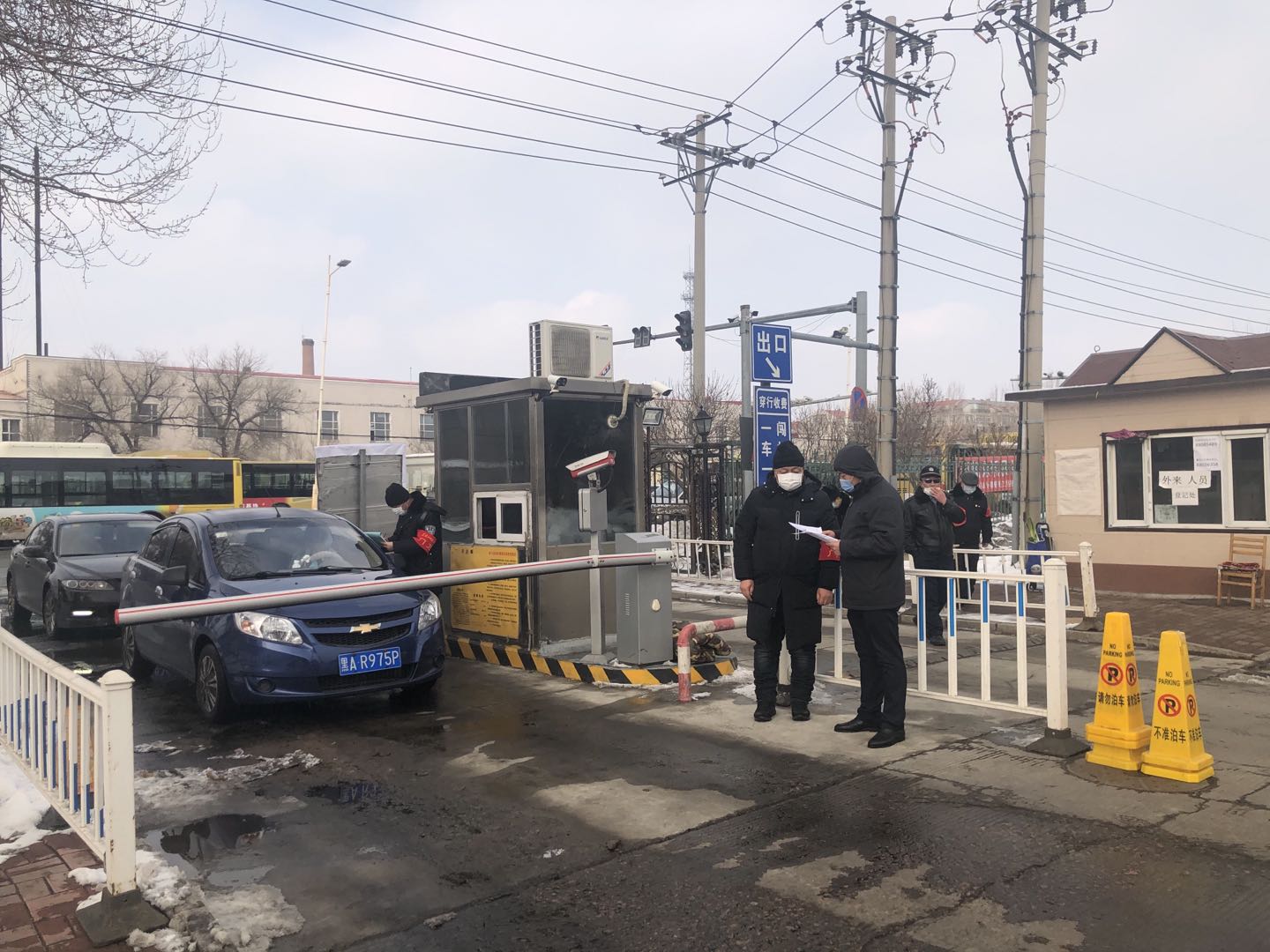 学校保卫处与安保人员一起严把校园入口关,严格执行人员和车辆管理规定,严禁未经审批私自入校,严禁校外人员和车辆入校。