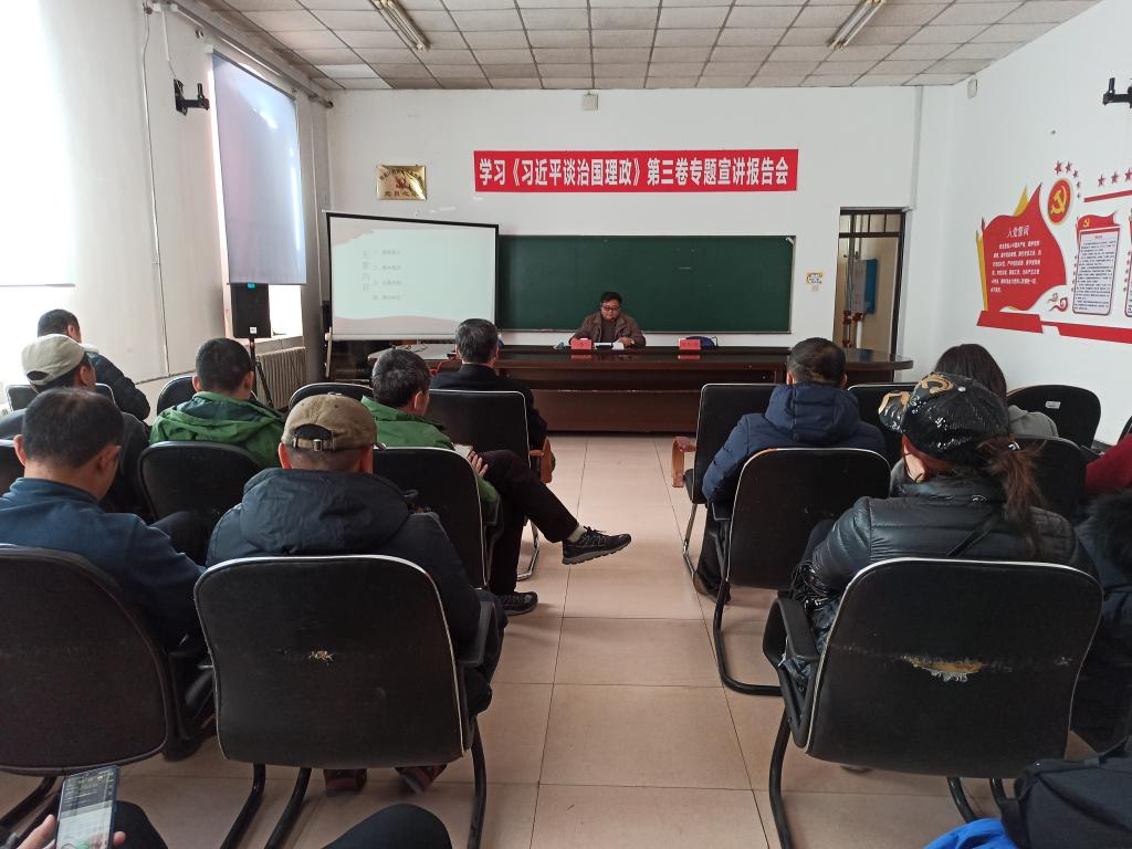 11月4日下午,实训中心邀请宣讲团成员、马克思主义学院副院长冯德军以“学习《习近平谈治国理政》第三卷”为主题召开了全体职工宣讲会。会议由中心副主任李强主持。