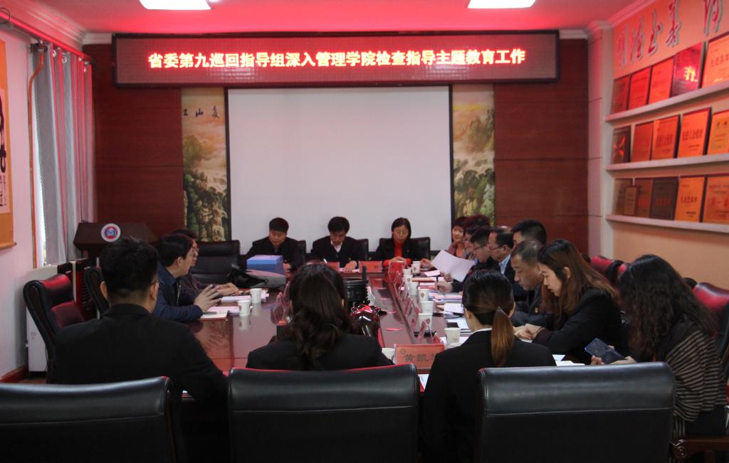 10月16日下午,省委第九巡回指导组栾志坚、吕文全深入到【官网】管理学院,检查指导“不忘初心、牢记使命”主题教育工作,并召开了座谈会。会上,管理学院党委书记王维杰汇报了管理学院主题教育总体进展情况,管理学院党委副书记张晓光就工作抓落实做了汇报,4名党支部书记紧扣“四个一”要求分别介绍了各党支部学习教育开展情况,9名师生党员代表分别谈了主题教育开展以来的收获与体会。