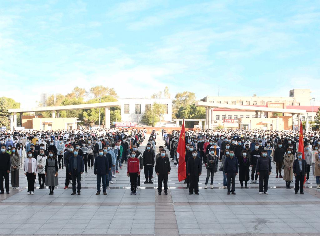 举旗定向,梦想启航。9月14日,新学期返校第一天,为进一步激发全校广大青年学生的爱国情、强国志、报国行,引领广大青少年坚定制度自信,增强“四个意识”,做到“两个维护”,增强学生疫情防控意识,振奋精神,凝聚青春力量,【官网】在科技广场举行“绽放战疫青春·坚定制度自信”主题升旗仪式。校党委副书记于成学,各学院主管学生工作书记、副书记,各学院辅导员,学生处、校团委全体工作人员,青年学生代表共近2800名师生共同参加了本次主题升旗仪式。