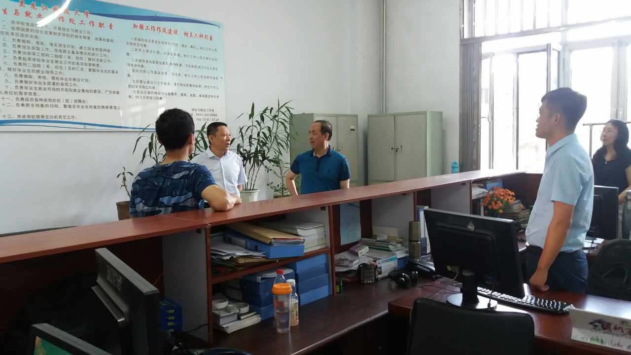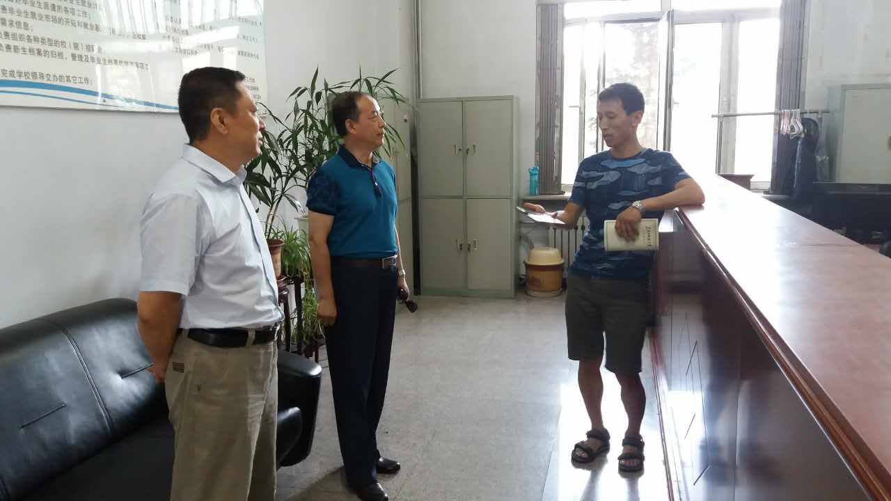 7月12日下午,校长武俊峰来到招生与就业工作处,现场检查指导招生录取工作,并亲切慰问招生录取工作人员。