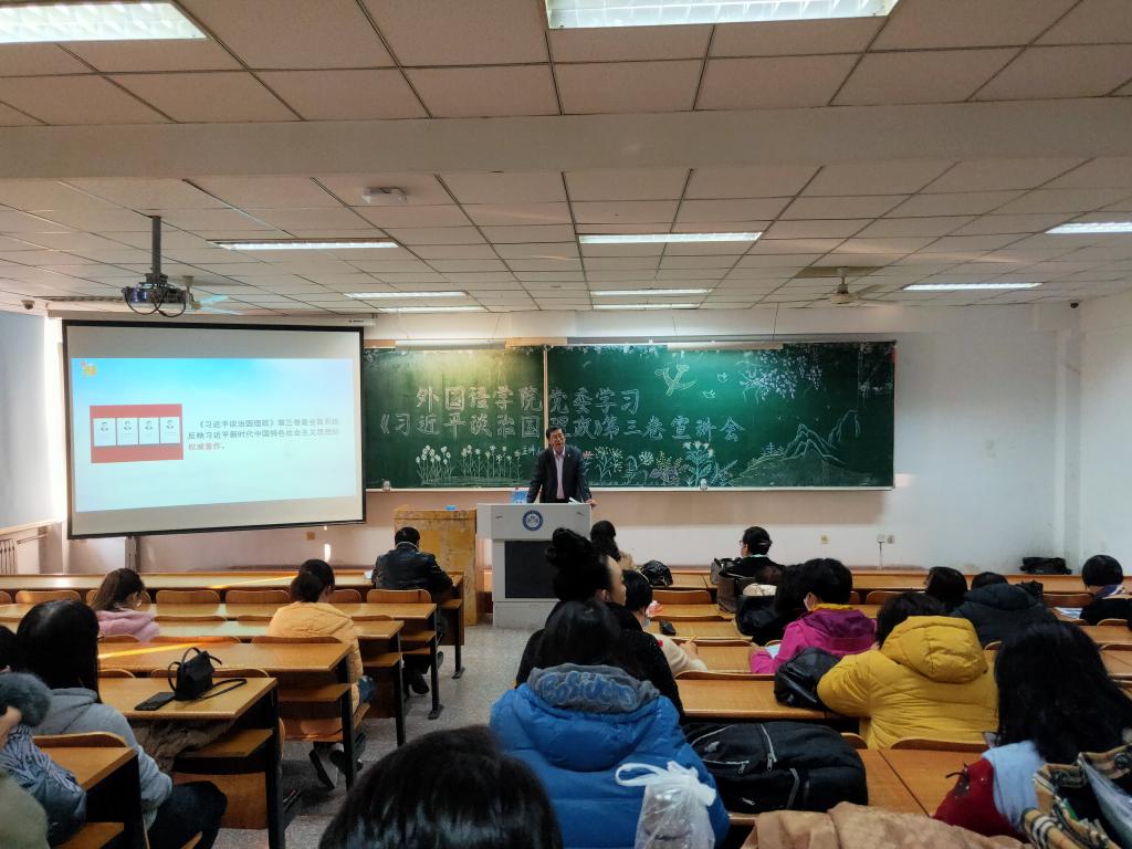 11月11日下午,外国语学院在科技大厦W205教室召开了学习《习近平谈治国理政》第三卷宣讲会,邀请宣讲团成员、马克思主义学院教师连永新作宣讲。会议由学院党委书记隋大勇主持。