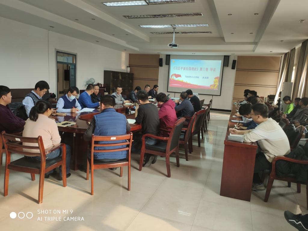 11月12日上午,环境与化工学院在多媒体教室召开《习近平谈治国理政》第三卷学习会。宣讲团成员、马克思主义学院教师常春红以“学好用好《习近平谈治国理政》第三卷”为题作了学习辅导报告,会议由学院党委书记周国江主持。