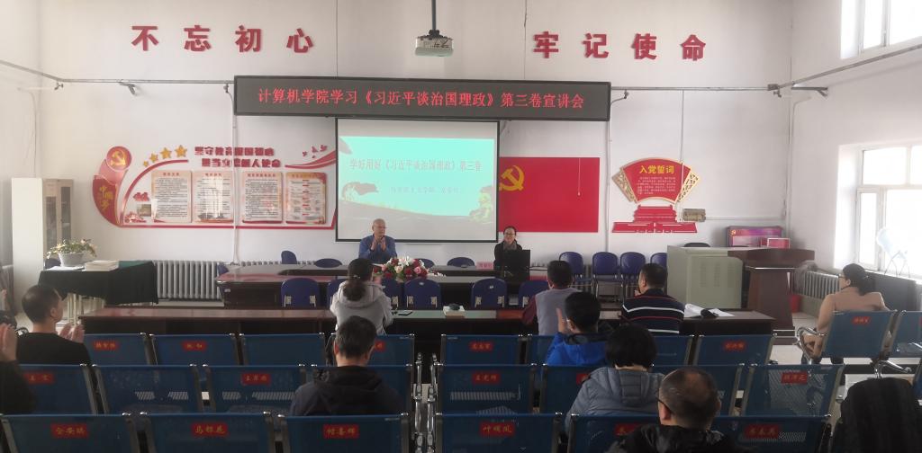 11月12日下午,计算机学院在三楼会议室召开《习近平谈治国理政》第三卷理论宣讲会。宣讲团成员、马克思主义学院常春红教授作宣讲。会议由学院党委书记吴新文主持。