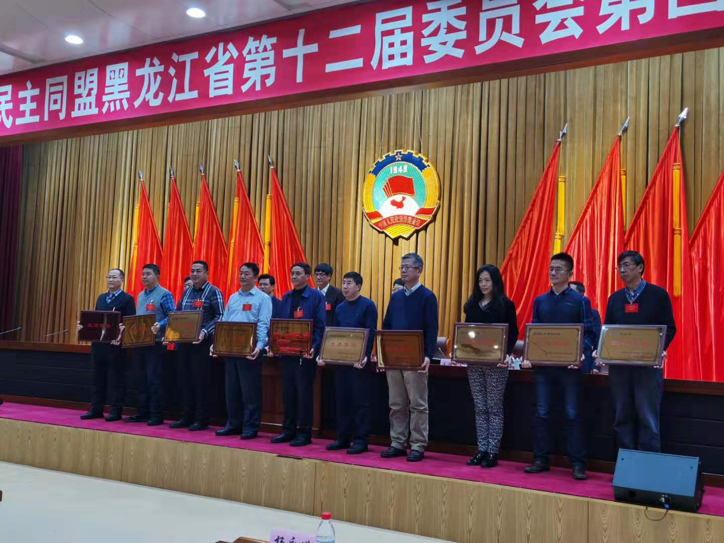 1月6日,中国民主同盟黑龙江省第十二届委员会第四次全体会议在哈尔滨召开。省政协副主席、民盟省委主委赵雨森出席会议并代表民盟省委十二届常务委员会作工作报告。【官网】民盟支部主委、教务处处长张国华参加会议并领奖。